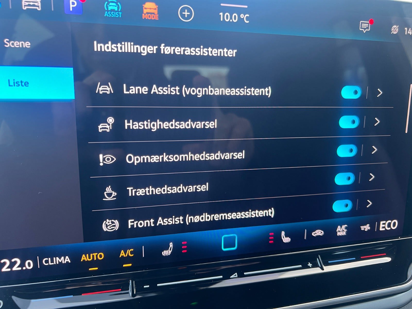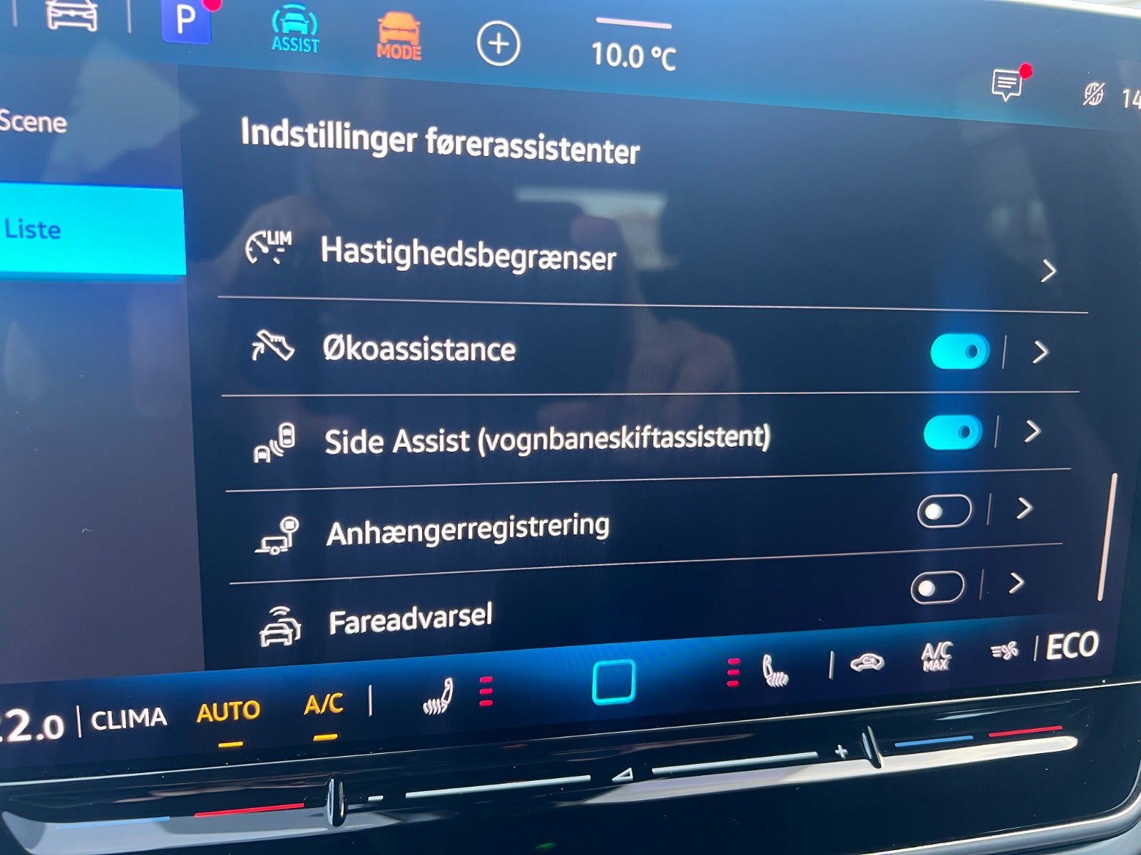 -Assistentpakke (Bakkamera, ambientebelysning ved dørhåndtag, nøglefri betjening Advanced, tyverialarm, Pre-Crash og Park Assist)