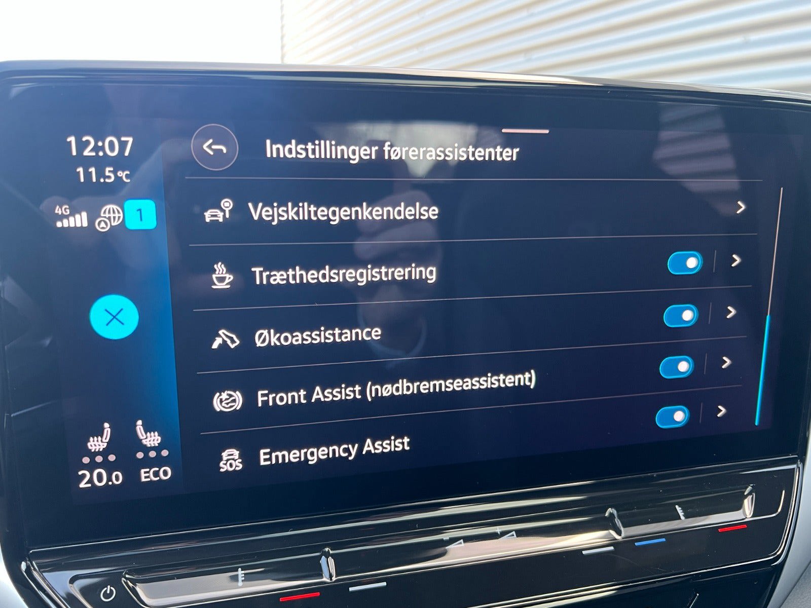 -Assistentpakke (Bakkamera, ambientebelysning ved dørhåndtag, nøglefri betjening Advanced, tyverialarm, Pre-Crash og Park Assist)